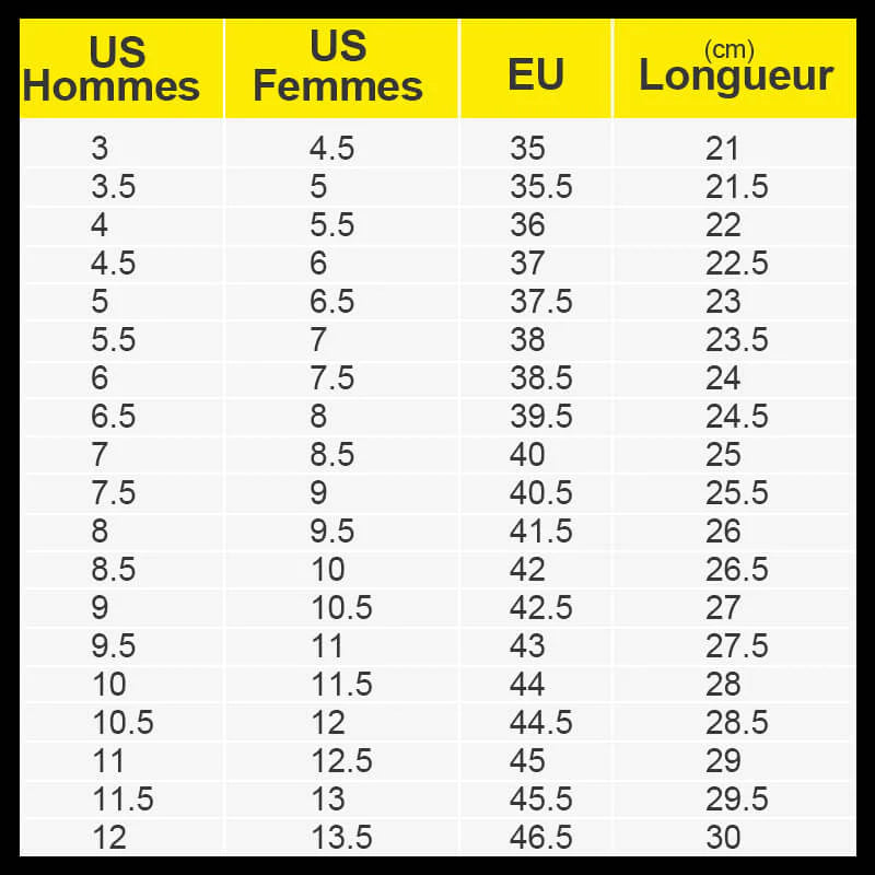 Si vous avez le pied plus large, cou-de-pied plus haut, vous pouvez choisir 1 taille plus grande !