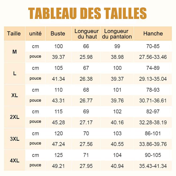 Taille : S, M, L, XL, 2XL, 3XL, 4XL.