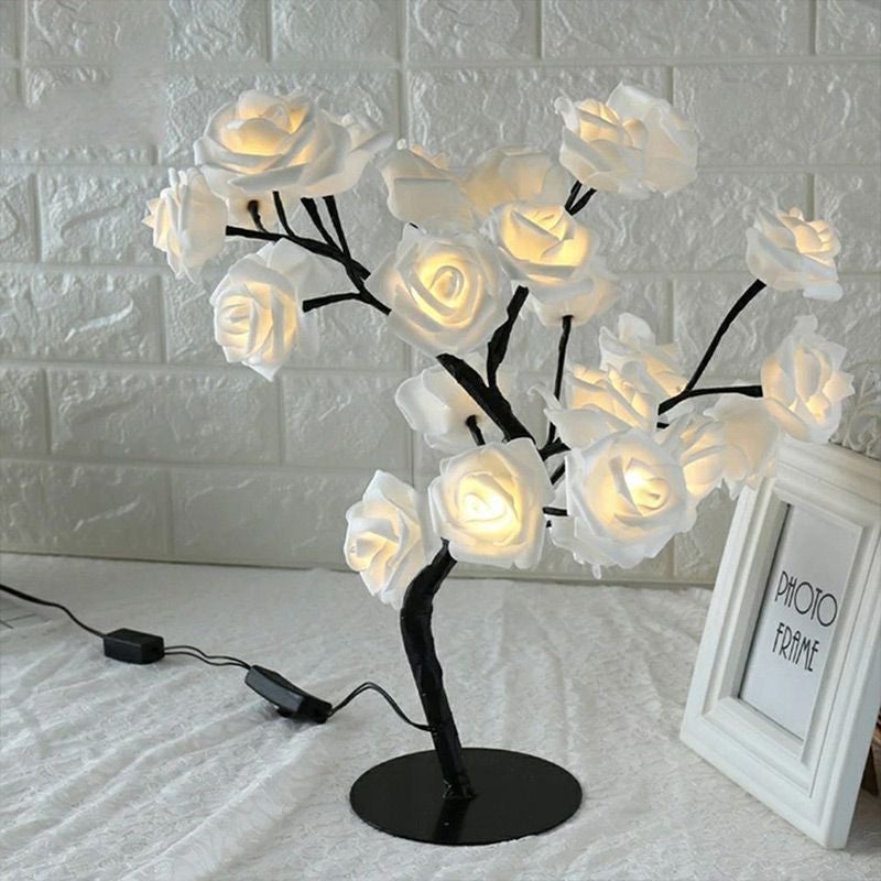 Des dessus de table aux étagères et rebords de fenêtre, cette lampe de table en rosier ajoutera une touche de magie à n'importe quel espace où vous la placerez.