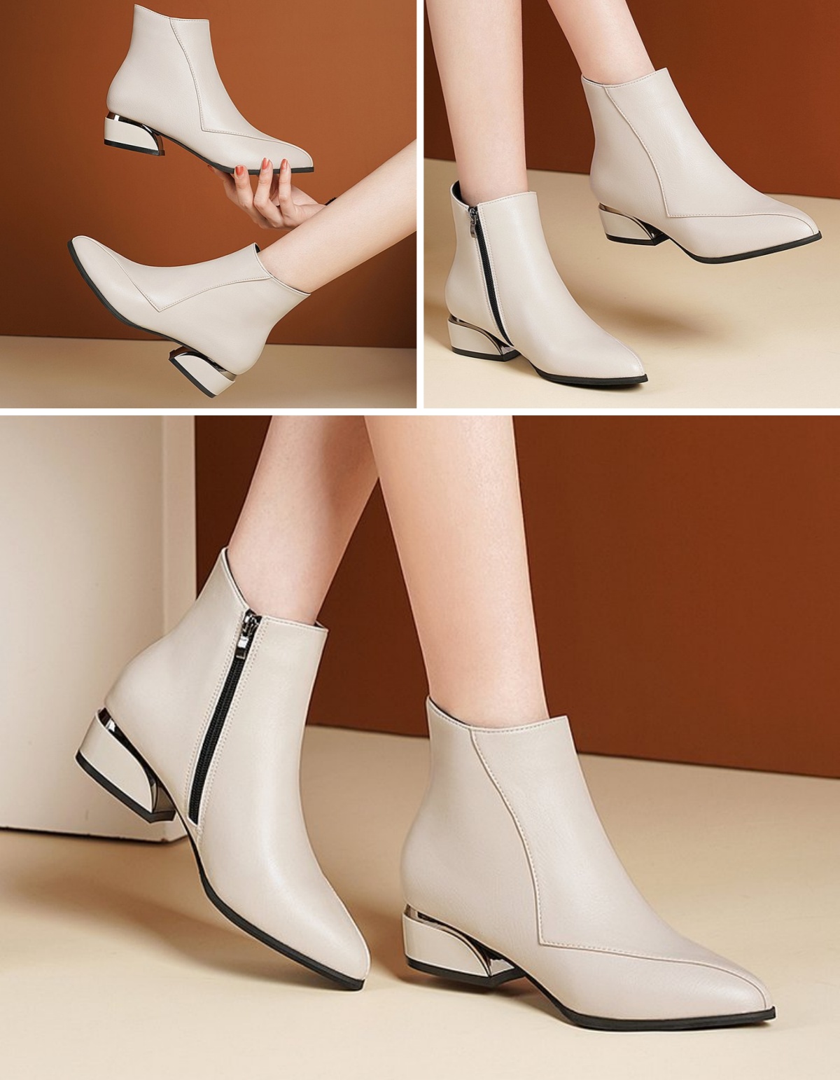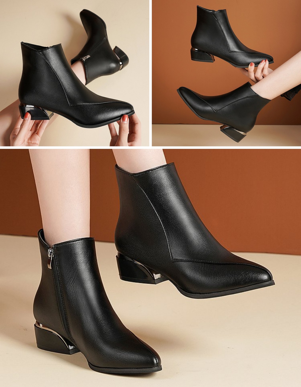 Bottines Femme à Fermeture Éclair avec Talon Bloc Épais (-50%)