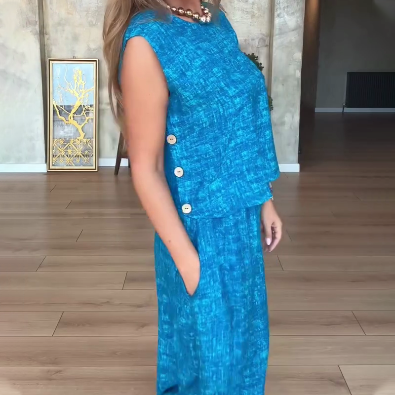 Ensemble 2 pièces sans manches et pantalon large pour femmes