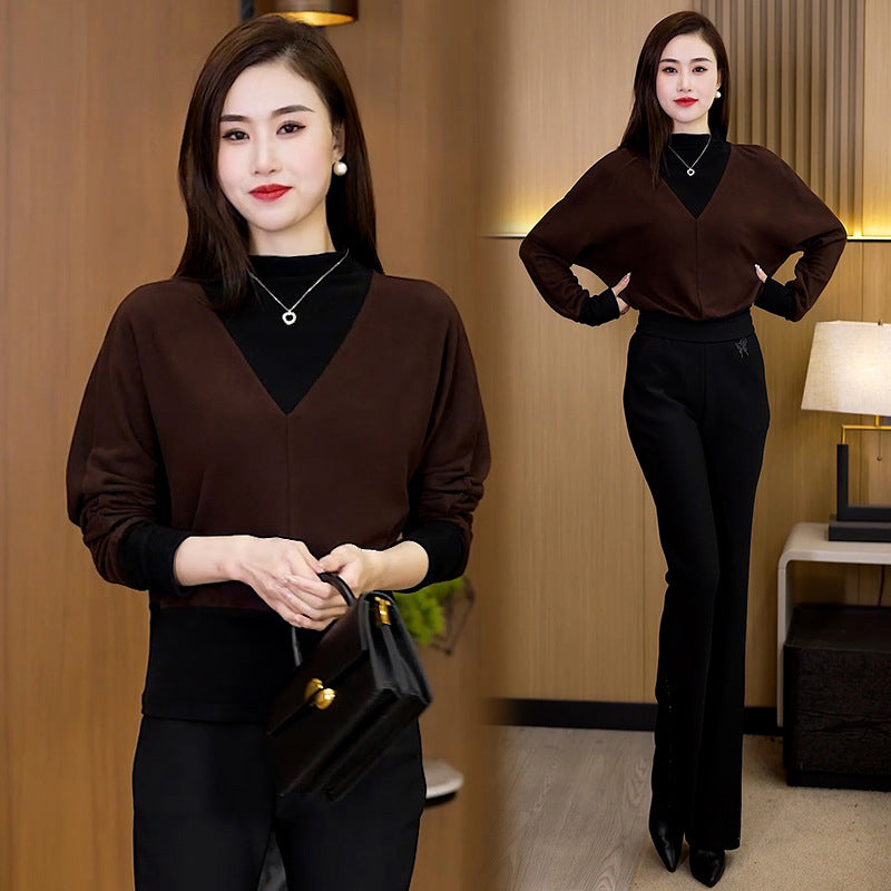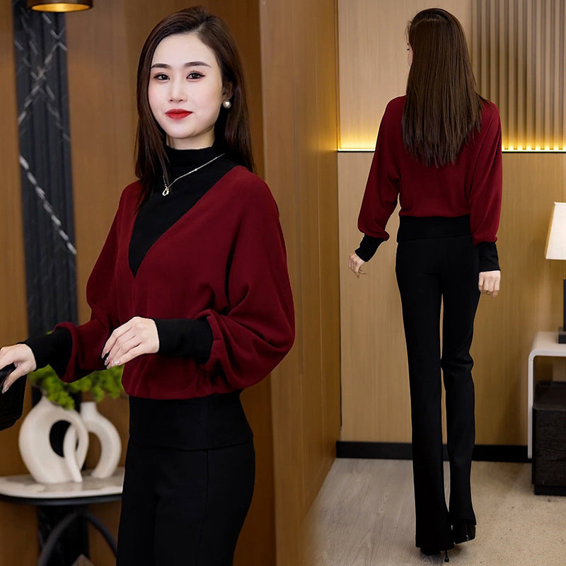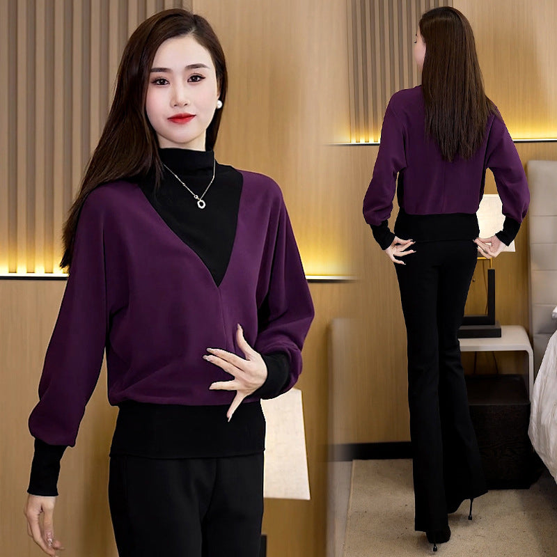 Contenu du paquet : 1 * Haut à manches longues et col mi-haut en patchwork pour femme