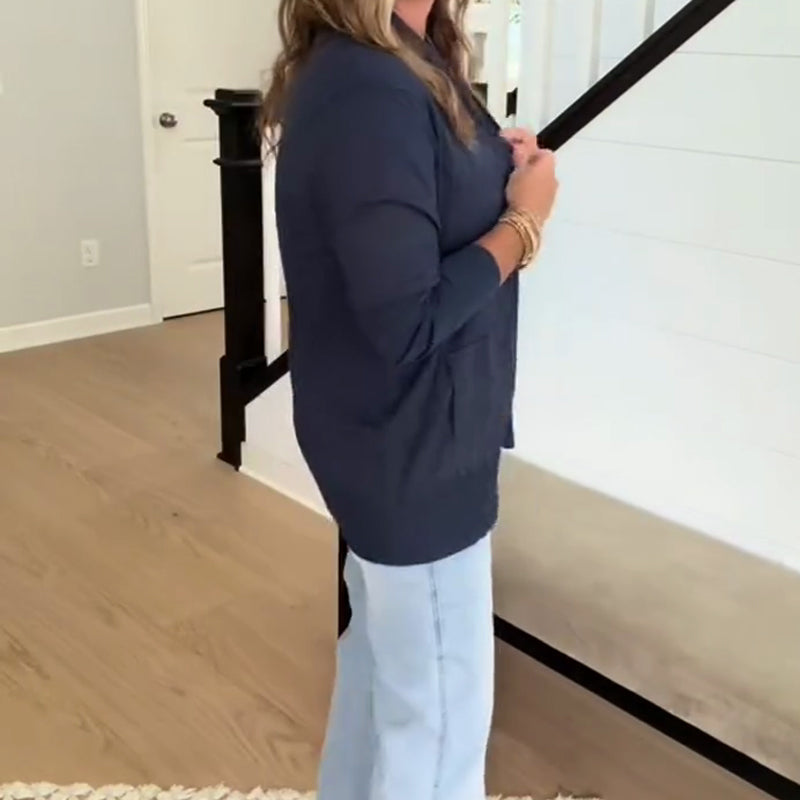 Design ouvert sur le devant – Ce cardigan arbore une coupe avant ouverte et épurée, idéale pour un style superposé. Ses lignes nettes offrent une silhouette décontractée mais chic, en faisant une pièce polyvalente à associer à toute tenue. Qu’il soit porté avec une tenue casual ou habillée, il ajoute une touche d’élégance naturelle.