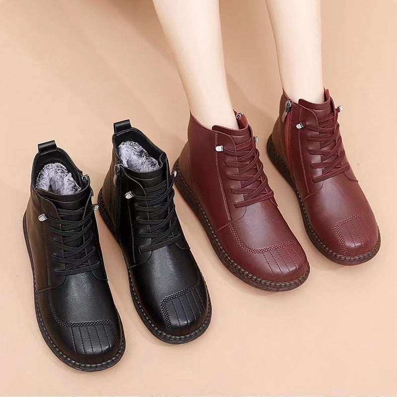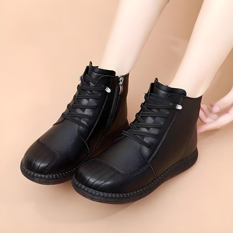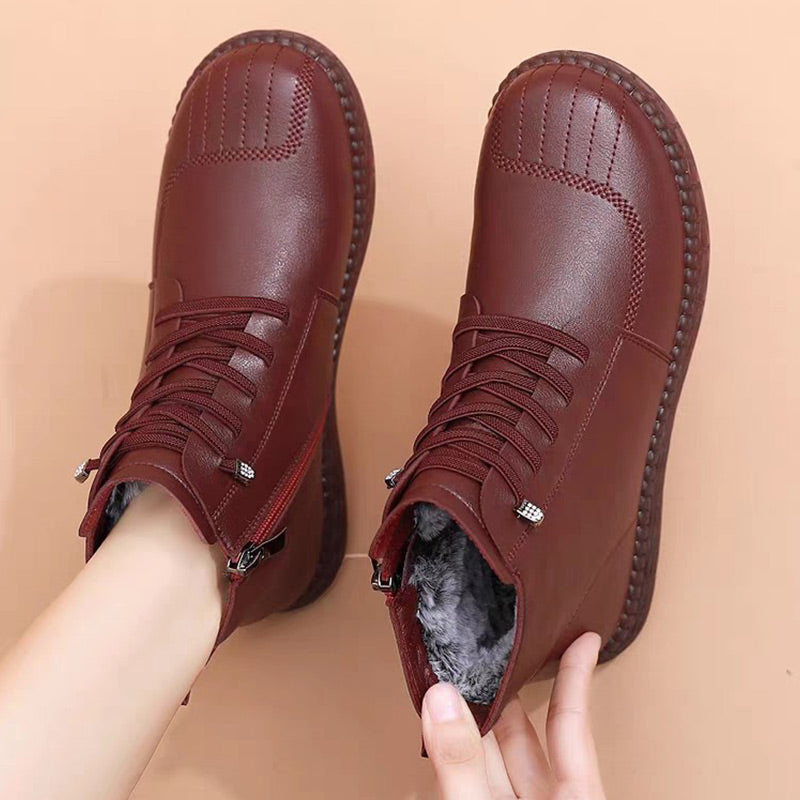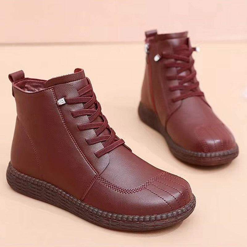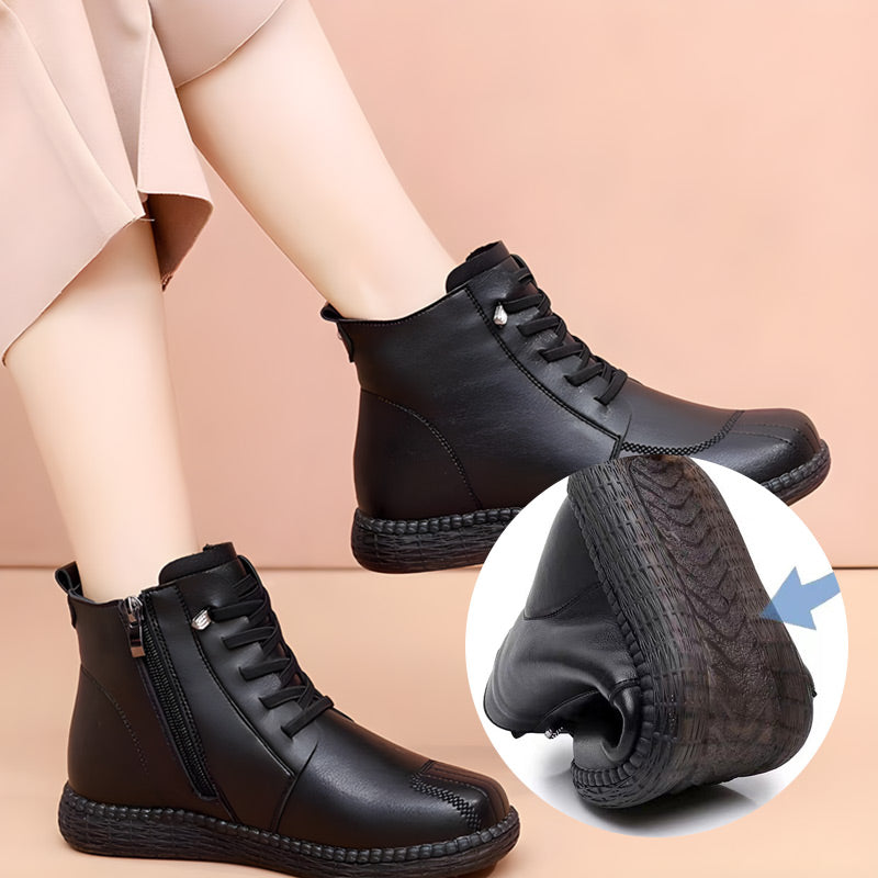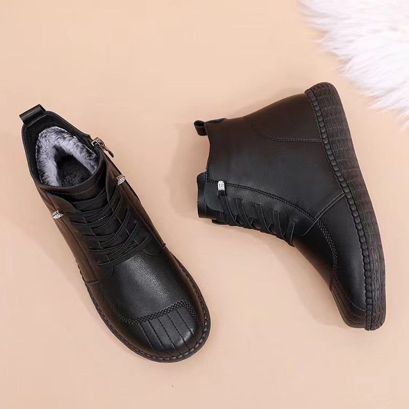 CUIR PU IMPERMÉABLE - Fabriquées en cuir PU durable et respectueux de l'environnement, ces bottines à cheville offrent un extérieur élégant et résistant à l'eau, gardant vos pieds au sec par temps humide ou neigeux.