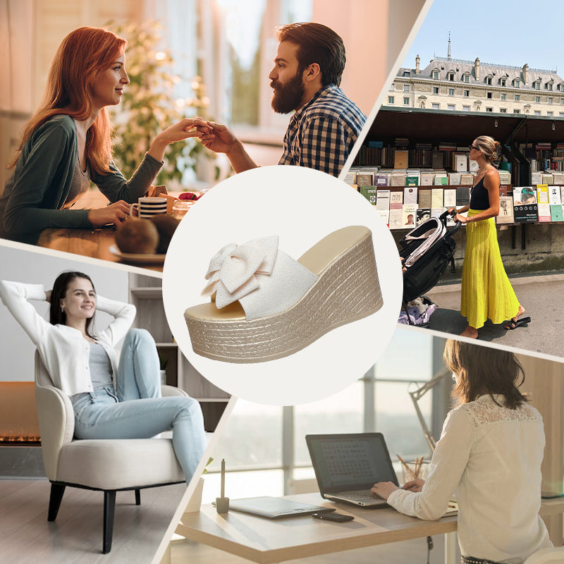 SÉCURITÉ RÉSISTANTE AU DÉRAPAGE : le profil profond de la semelle extérieure en TPR offre une excellente adhérence sur les sols intérieurs et les trottoirs extérieurs. La conception angulaire du coin améliore la stabilité par rapport aux pantoufles plates traditionnelles et réduit les glissades accidentelles de 40 % lors des tests en laboratoire.